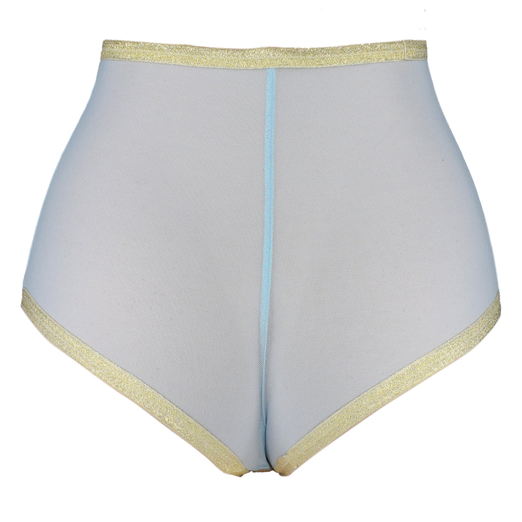 L'Amour et Psyché, enfants high waist panty set is hand printed using sublimation on a buttery soft polyester/spandex. High waist panty is finished with a sparkly gold fold over elastic. Panty has a cotton gusset.
