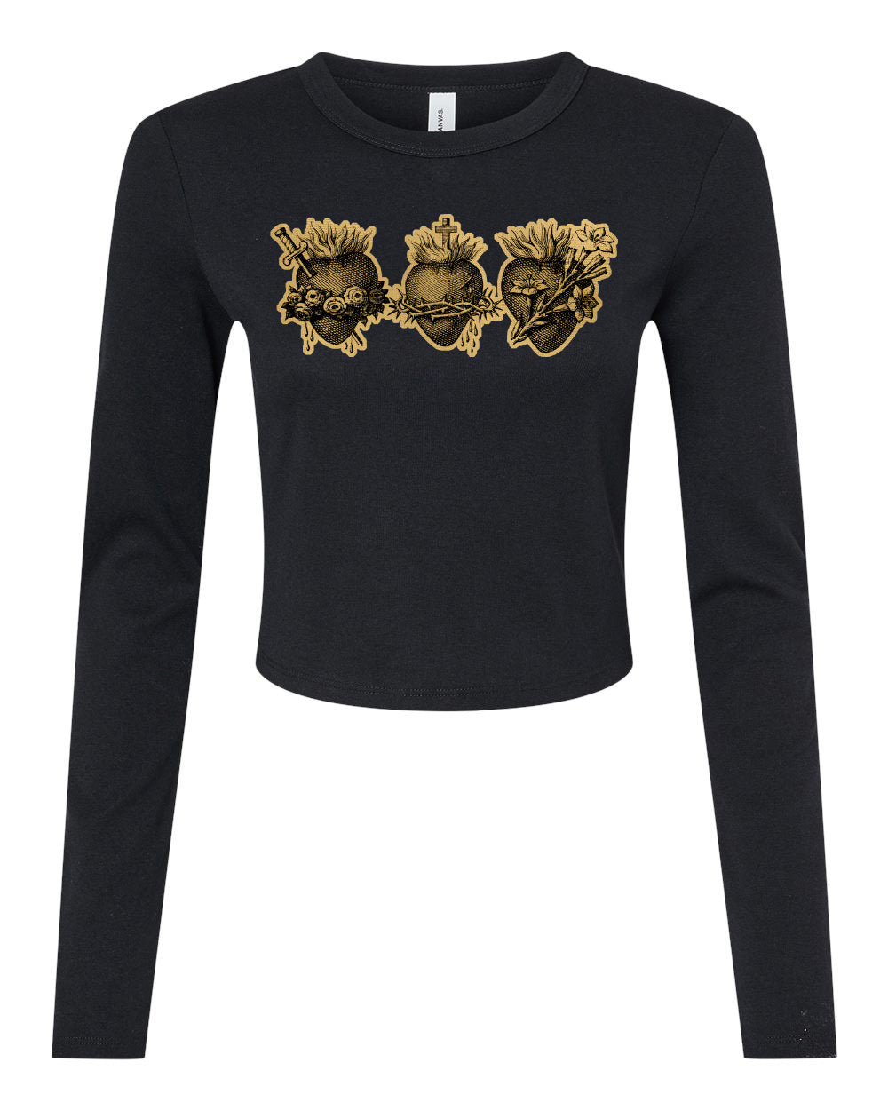Gold Sacred Hearts - Fitted Long Sleeve T-Shirt